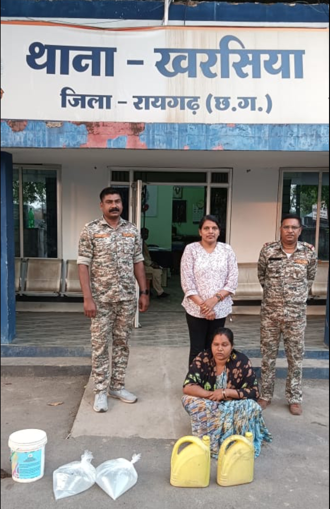 खरसिया। पुलिस अधीक्षक दिव्यांग कुमार पटेल के निर्देशन में रायगढ़ जिले में अवैध मादक पदार्थों और शराब के खिलाफ सख्त अभियान जारी है। इसी अभियान के तहत खरसिया थाना पुलिस ने ग्राम चारपारा में बड़ी कार्यवाही को अंजाम देते हुए एक महिला को 20 लीटर महुआ शराब के साथ गिरफ्तार किया है।