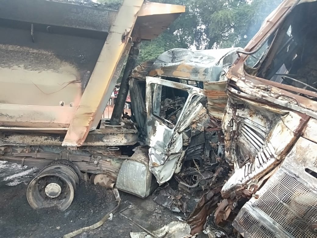 ट्रकों की जोरदार टक्कर के बाद लगी भीषण आग, दो लोग जिंदा जले, दो गंभीर रूप से घायल