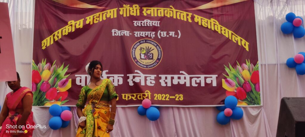 महाविद्यालय में वार्षिक स्नेह सम्मेलन 2023 के अंतिम चरण में दिनांक 16 फरवरी 2023 को सामूहिक मंचीय सांस्कृतिक कार्यक्रम खरसिया विधानसभा क्षेत्र के विधायक प्रदेश सरकार के उच्च शिक्षा, कौशल विकास, तकनीकी शिक्षा एवं रोजगार, विज्ञान एवं प्रौद्योगिकी, खेल एवं युवा कल्याण मंत्री उमेश नंदकुमार पटेल के मुख्य आतिथ्य में संपन्न हुआ ।