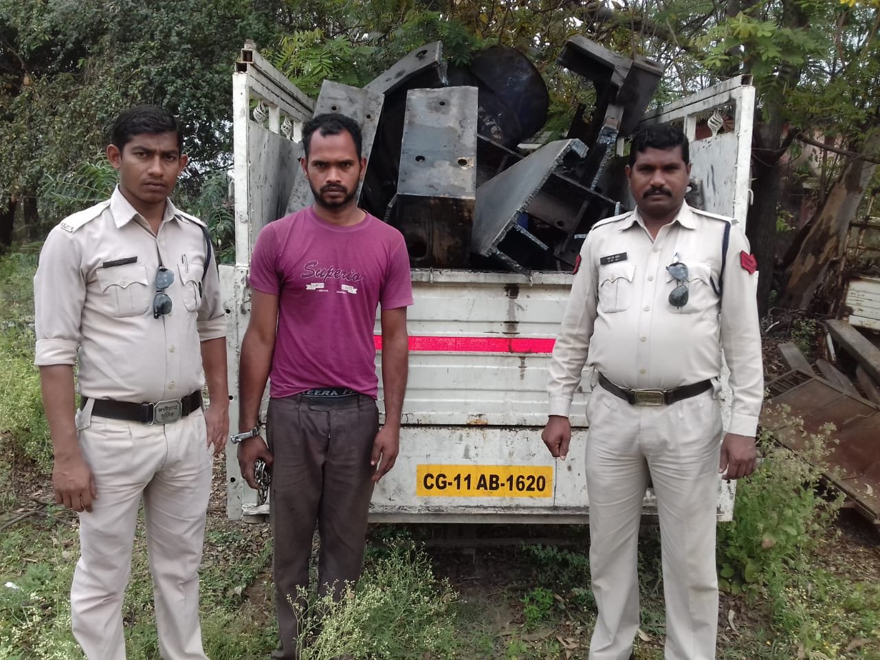 दिनांक 02.03.2020 को थाना खरसिया एवं थाना पूंजीपथरा क्षेत्र में अवैध रूप से स्क्रैप के परिवहन पर कार्यवाही कर लाखों का स्क्रेप पकड़ा गया है । दिनांक 02.03.2020 को खरसिया पुलिस द्वारा रानीसागर चौक में नाकेबंदी कर खरसिया तरफ से आ रही पिकअप वाहन क्रमांक सीजी 11 ए.बी. 16 20 को रोककर चेक किया गया, चेक करने पर पिकअप में करीब 2 टन 350 किलो ग्राम कीमती करीब 4 लाख रूपये का स्क्रैप (मशीन के पार्ट्स कटा हुआ) लोड था । वाहन के चालक राजेश कुमार सतनामी पिता भुरवा राम सतनामी उम्र 26 वर्ष निवासी छतौना थाना मालखरौदा जिला जांजगीर चांपा को स्क्रैप के संबंध में कागजात पेश करने को कहने पर कोई कागजात पेश नहीं किया । लोड स्क्रैप चोरी की संपत्ति होने की अंदेशा पर खरसिया पुलिस द्वारा 41(1+4)CrPC/ 379 IPC के तहत कार्यवाही की गई है ।