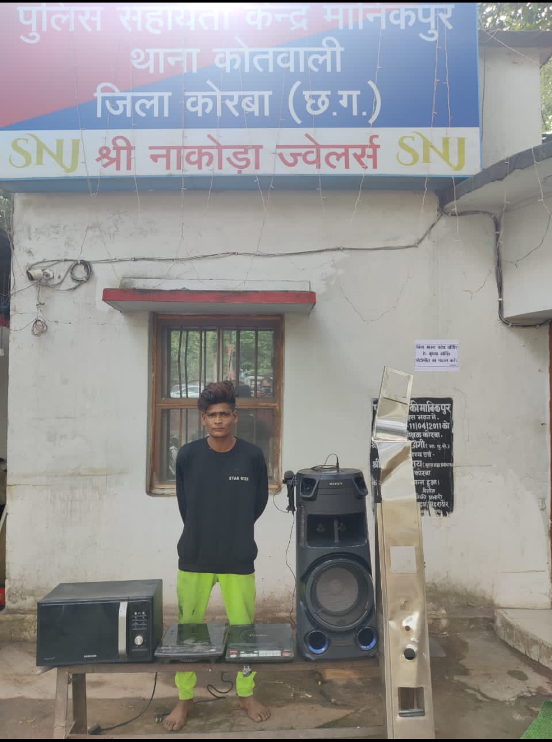 वरिष्ठ अधिकारियों के मार्गदर्शनानुसार मानिकपुर पुलिस चौकी के स्टॉफ द्वारा लगातार तकनीकी साक्ष्यों व स्थानीय सूचना तंत्र के सहयोग से 24 घंटे के भीतर अथक परिश्रम करते हुए आरोपी लखन राजपूत पिता स्व. दशरथ राजपूत उम्र 19 वर्ष सा. रामसागरपारा कोरबा थाना कोतवाली कोरबा व दो विधि से संघर्षरत बालकों के संयुक्त कब्जे से चोरी गया शत-प्रतिशत मशरुका SONY कंपनी का पार्टी स्पीकर कीमती लगभग 35 हजार रुपये, SAMSUNG कंपनी का माइक्रोवेव कीमती लगभग 4000 रुपये, JAGUAR कंपनी का शॉवर सैट कीमती लगभग 30 हजार रुपये और घरेलू उपयोग के कुछ अन्य सामान कुल कीमती लगभग 69000 रुपये बरामद करने में सफलता प्राप्त हुई। उल्लेखनीय है कि उक्त आरोपी लखन राजपूत व दोनों विधि से संघर्षरत बालक पूर्व में भी चोरी के प्रकरण में चालान किये जा चुके हैं।