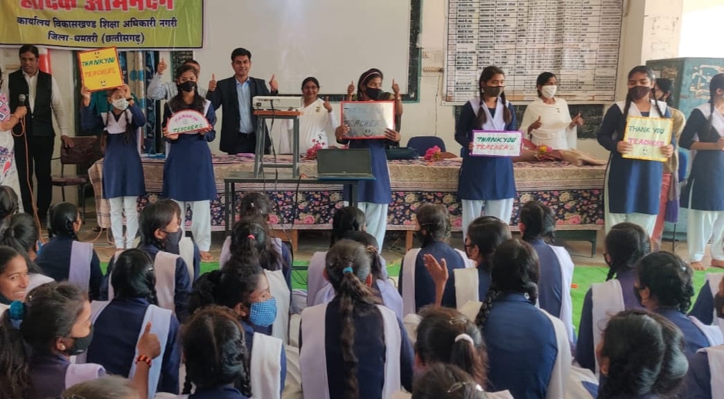 नगरी-धमतरी / आदिवासी विकास खंड नगरी में बोर्ड परीक्षा में सम्मिलित होने वाले कक्षा 10वीं एवं कक्षा 12वीं के विद्यार्थियों के मन में परीक्षा पूर्व उत्पन्न होने वाले भय एवं तनाव से मुक्ति हेतु कलेक्टर पी.एस.एल्मा तथा जिला शिक्षा अधिकारी डा.रजनी नेल्सन के मार्गदर्शन में विकासखंड शिक्षा अधिकारी नगरी सतीश प्रकाश सिंह की प्रेरणा एवं पहल से “हम होंगे कामयाब” “छात्र तनाव मुक्ति प्रबंधन” कार्यक्रम दिनांक 18 फरवरी 2022 को स्वामी आत्मानंद उत्कृष्ट अंग्रेजी माध्यम श्रृंगी ऋषि उच्चतर माध्यमिक विद्यालय नगरी तथा शासकीय उच्चतर माध्यमिक विद्यालय सांकरा में सफलतापूर्वक संपन्न हुआ।