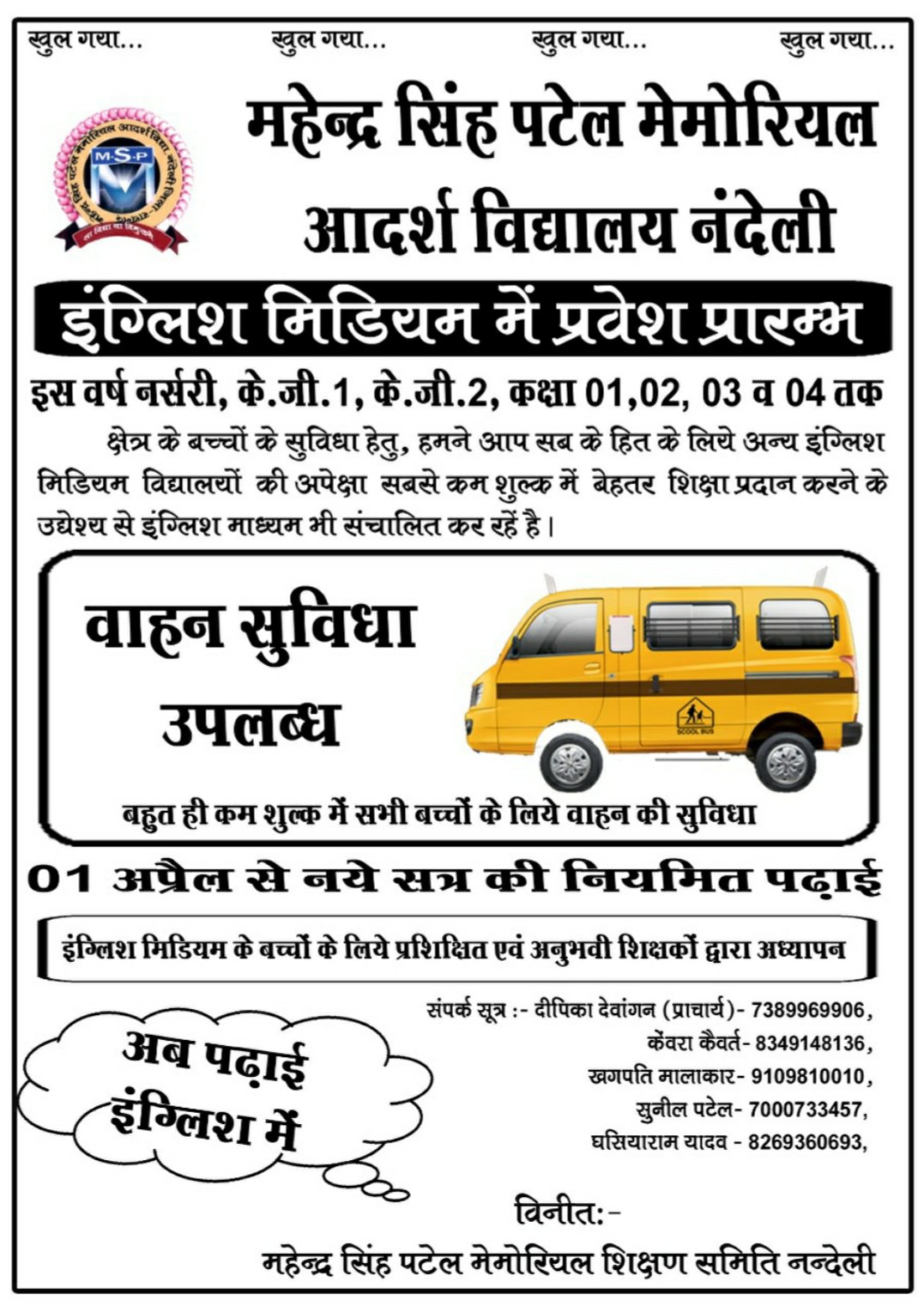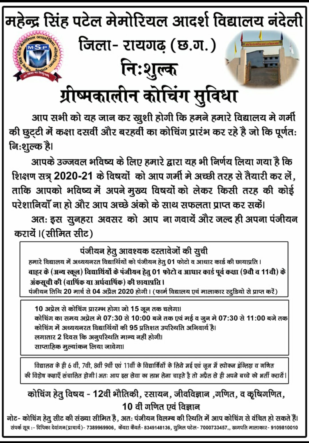 भविष्य गढ़ता महेंद्रसिंह पटेल मेमोरियल आदर्श विद्यालय खगपति मालाकार