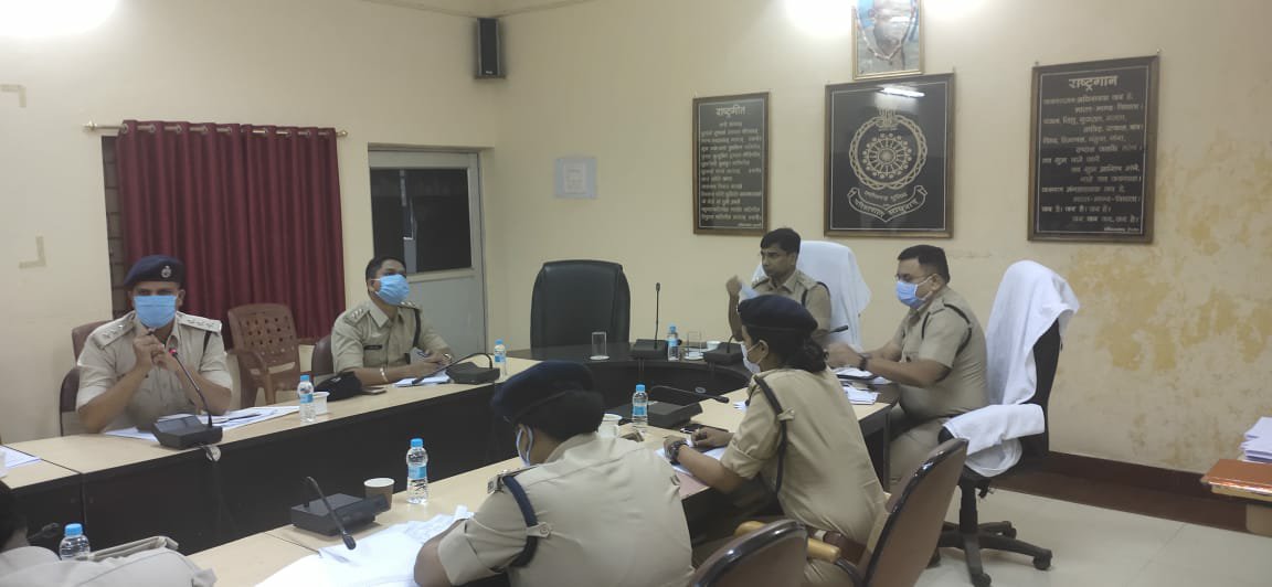 दिनांक 10.05.2020 को पुलिस अधीक्षक द्वारा विडियो कांफ्रेसिंग के जरिए सभी राजपत्रित अधिकारियों एवं थाना/ चौकी प्रभारियों की मीटिंग ली गई थी । वर्तमान समय में पुन: कोविड-19 को लेकर सभी राजपत्रित अधिकारियों एवं थाना/चौकी प्रभारियों के साथ बैठक की आवश्यकता महसूस होने पर दिनांक 03.06.2020 को पुलिस कंट्रोल रूम में अपराध एवं कोविड-19 को लेकर समीक्षा बैठक रखा गया था । सोशल/फिजिकल डिस्टेंसिंग को ध्यान में रखते हुए जिला पुलिस की शाखा IUCAW, यातायात, चौकी प्रभारियों एवं शाखा प्रभारियों को बैठक पृथक में सम्मिलित न कर उनकी बैठक पृथक से ली जावेगी ।