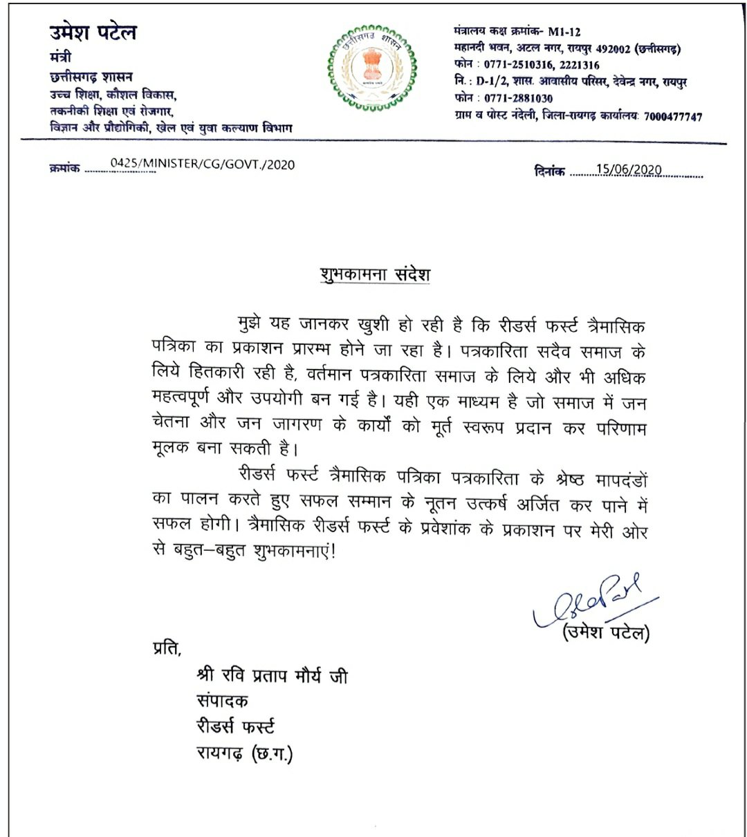 ( उच्च शिक्षा मंत्री उमेश पटेल दिए बधाई …)