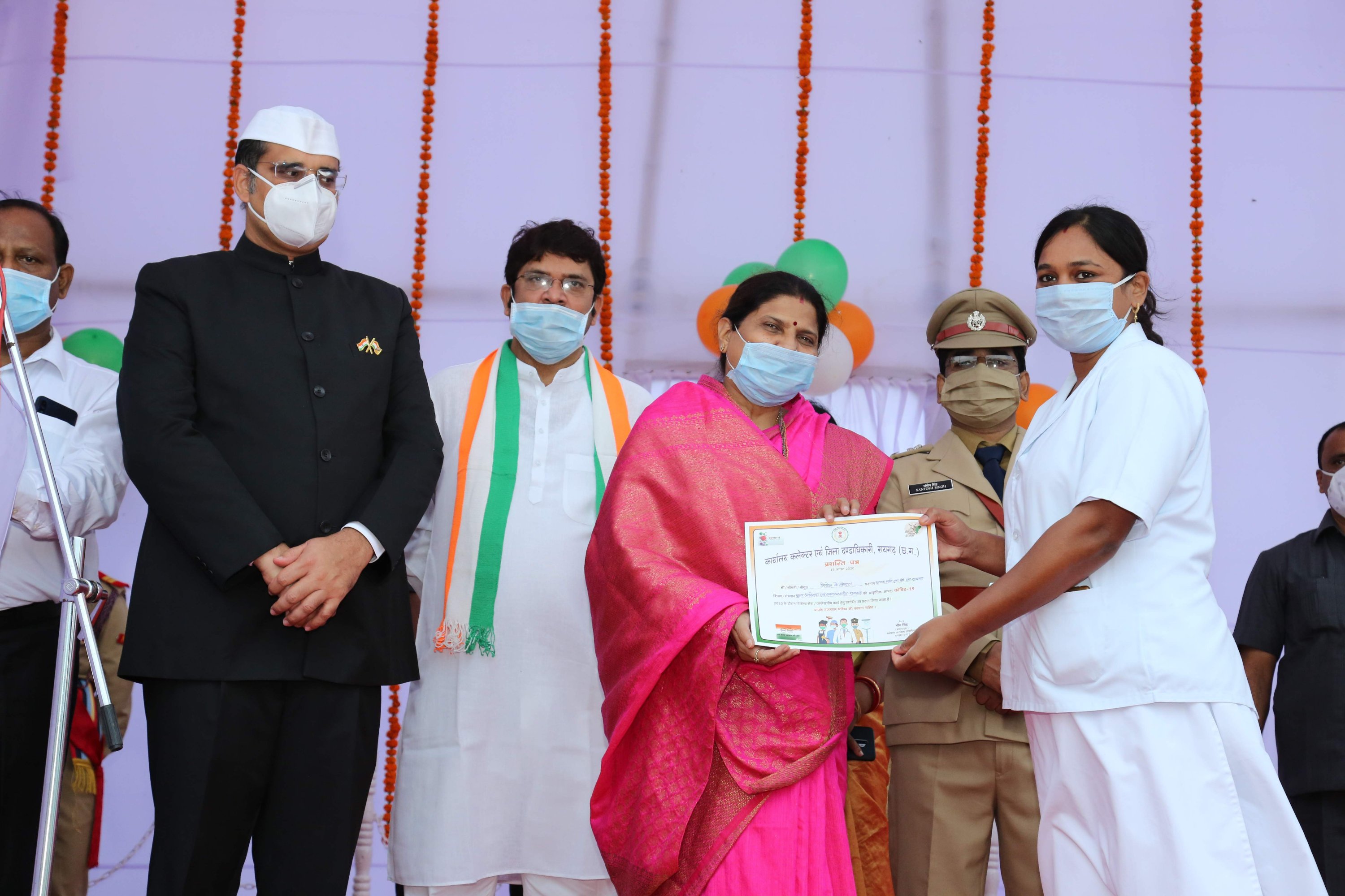 संसदीय सचिव श्रीमती रश्मि आशीष सिंह ने मुख्य समारोह में ध्वजारोहण किया रायगढ़ जिले में मनाया गया स्वतंत्रता दिवस कोरोना वारियर्स का किया गया सम्मान