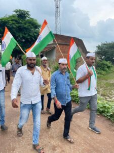 राम शर्मा @खरसिया- अखिल भारतीय कांग्रेस कमेटी के निर्देश पर आज ब्लॉक कांग्रेस कमेटी खरसिया ने भारत की 75 वीं स्वतंत्रता अमृत महोत्सव पर खरसिया विधानसभा क्षेत्र के ग्राम पुरैना से कांग्रेस जनो ने तिरंगा झण्डा हाथों में लेकर भारत माता की जय, वन्दे मातरम, राष्ट्रपिता महात्मा गांधी अमर रहे, जब तक सूरज चांद रहेगा इंदिरा तेरा नाम रहेगा के नारे लगाते हुए खरसिया विधानसभा क्षेत्र के ग्राम पुरैना से विधानसभा स्तरीय गौरव पदयात्रा प्रारंभ की गई पदयात्रा ग्राम हालाहुली होते ग्राम डूमरभाठा से ग्राम घघरा पहुँचकर दूसरे चरण की पदयात्रा का दूसरे चरण का समापन किया गया।