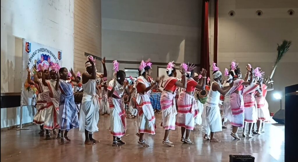 रायगढ़-28 सीसी बटालियन एनसीसी रायगढ़ के संयोजन में चल रहे एक भारत श्रेष्ठ भारत के 12 दिवसीय विशेष शिविर में सहभागी छात्र-छात्राओं को छत्तीसगढ़ की कला और संस्कृति से परिचित कराने के लिए रायगढ़ के समाज कल्याण विभाग एवं आदिम जाति कल्याण विभाग के संयोजन में रायगढ, तमनार एवं लैलूंगा विकासखंड के कलाकारों द्वारा 15 सितंबर गुरुवार को नगर पालिक निगम ऑडिटोरियम पंजरीप्लांट में भव्य सांस्कृतिक प्रस्तुति दी गई ।
