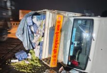 एनएच-49 पर अंगूर से भरी पिकअप पलटी, चालक घायल